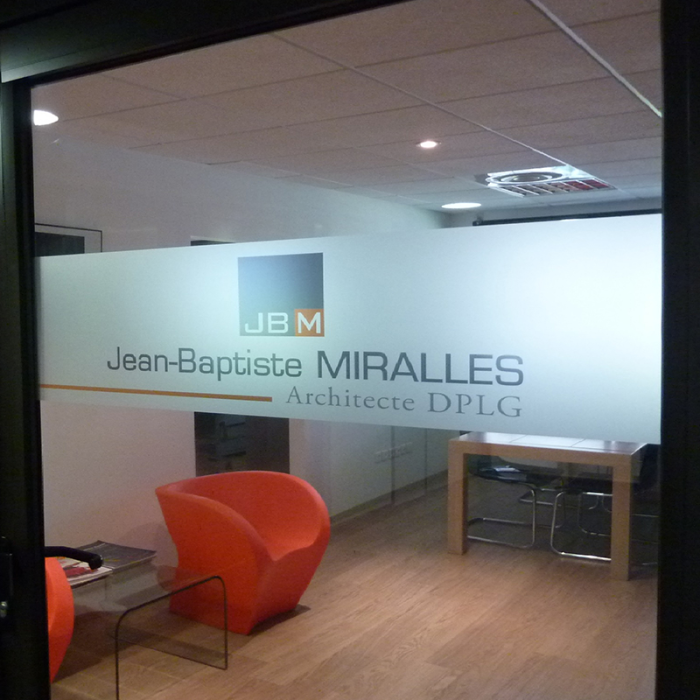 L’adhésif Alep consiste à imprimée sur un adhésif type dépolie imitation verre sablé. Celui-ci et découpée a la forme que vous souhaité. Cela peut être du texte, un logo ou toutes autres formes ou dessins.